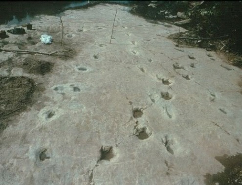Pamiętasz wysokie istoty z kamieni z ICA? 200 milionów lat temu wysoka istota żyła obok dinozaurów. Fakt ten potwierdzają też olbrzymie ludzkie stopy odciśnięte w pobliżu wielkich mięsożernych dinozaurów, około 12 kilometrów na wschód od Mont Vernon w Kentucky. Datuje się je na 200 milionów lat. Większość z nich jest większa od prehistorycznych gadów, mają po około 50-70 centymetrów długości i 20 centymetrów szerokości.
